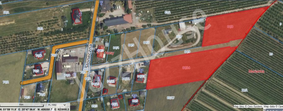 Nieruchomość położona jest w miejscowości Nosy, przy ulicy Słonecznej.