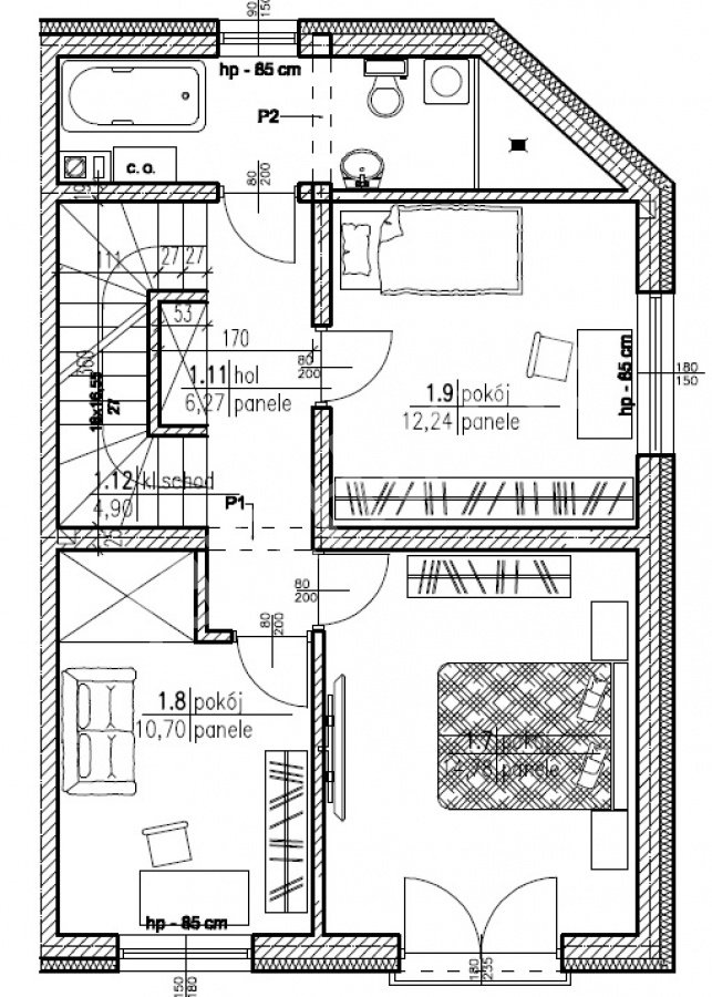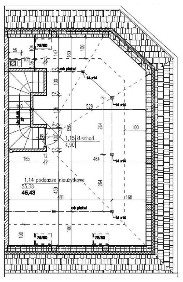 | Kształt dachu | DWUSPADOWY | Poddasze | NIEUŻYTKOWE |