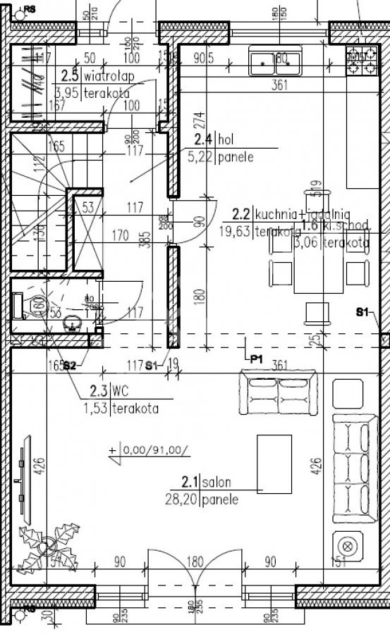 | Powierzchnie kuchni | 19,00 m² | Liczba łazienek | 1 |