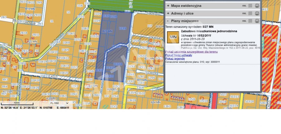 Nieruchomość położona jest w miejscowości Tłuszcz w powiecie wołomińskim w okolicy ulicy Wyspiańskiego. Rodzaj działki: budowlana.